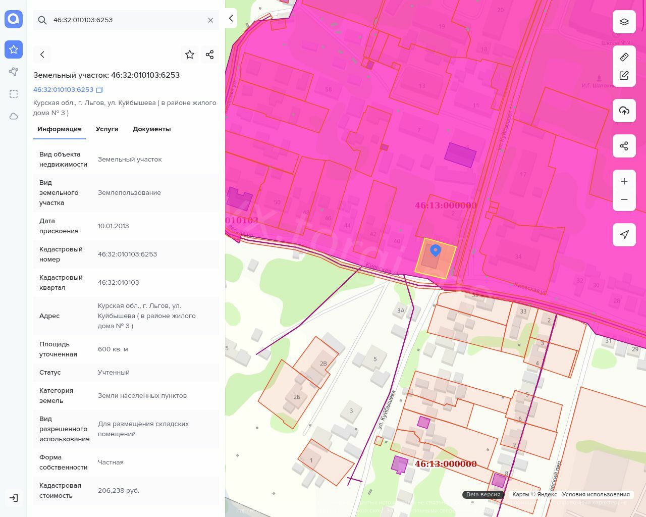 Адрес: Россия, Курская область, г. Льгов, ул. Куйбышева (в районе жилого дома № 3) Cведения о наличии или об отсутствии обременений, судебных споров на момент размещения торгов: Обременения и судебные споры отсутствуют Наличие лиц обладающих преимущественным правом покупки лота: Нет